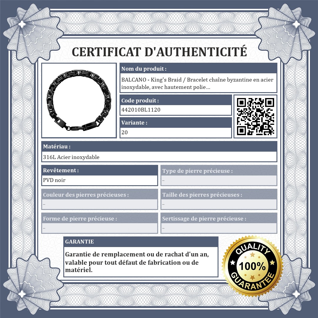 BALCANO - Square King / Bracelet chaîne byzantine en acier inoxydable, avec hautement polie et plaqué PVD noir - 7 mm
