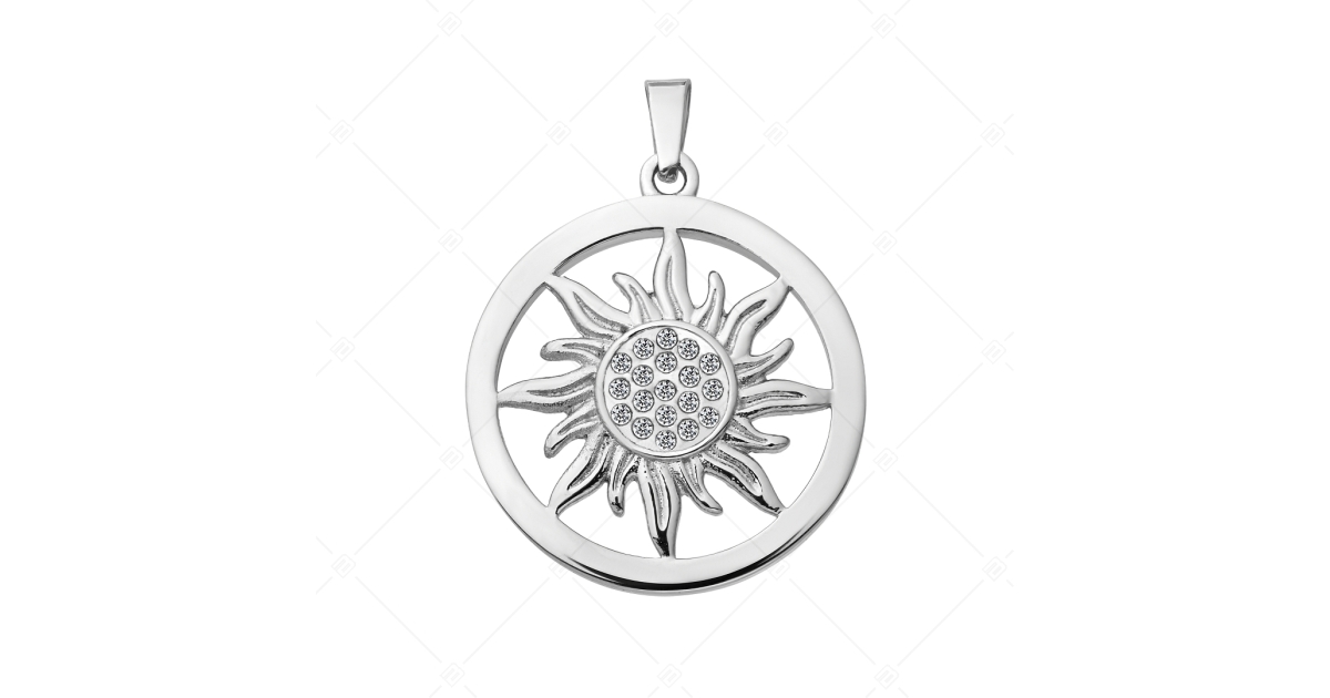 BALCANO - Sun / Pendentif soleil en acier inoxydable avec pierres précieuses de zircone avec hautement polie