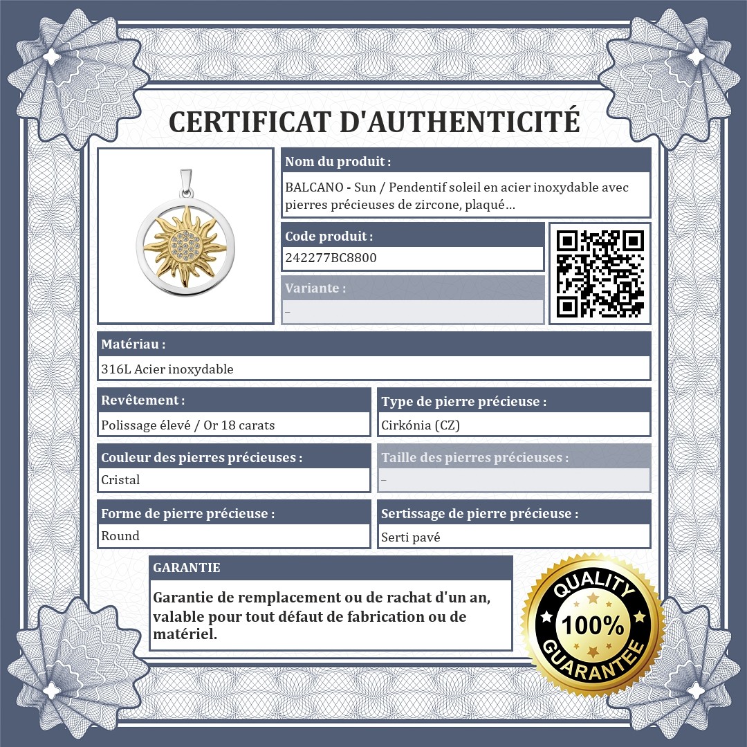 BALCANO - Sun / Pendentif soleil en acier inoxydable avec pierres précieuses de zircone, plaqué or 18K