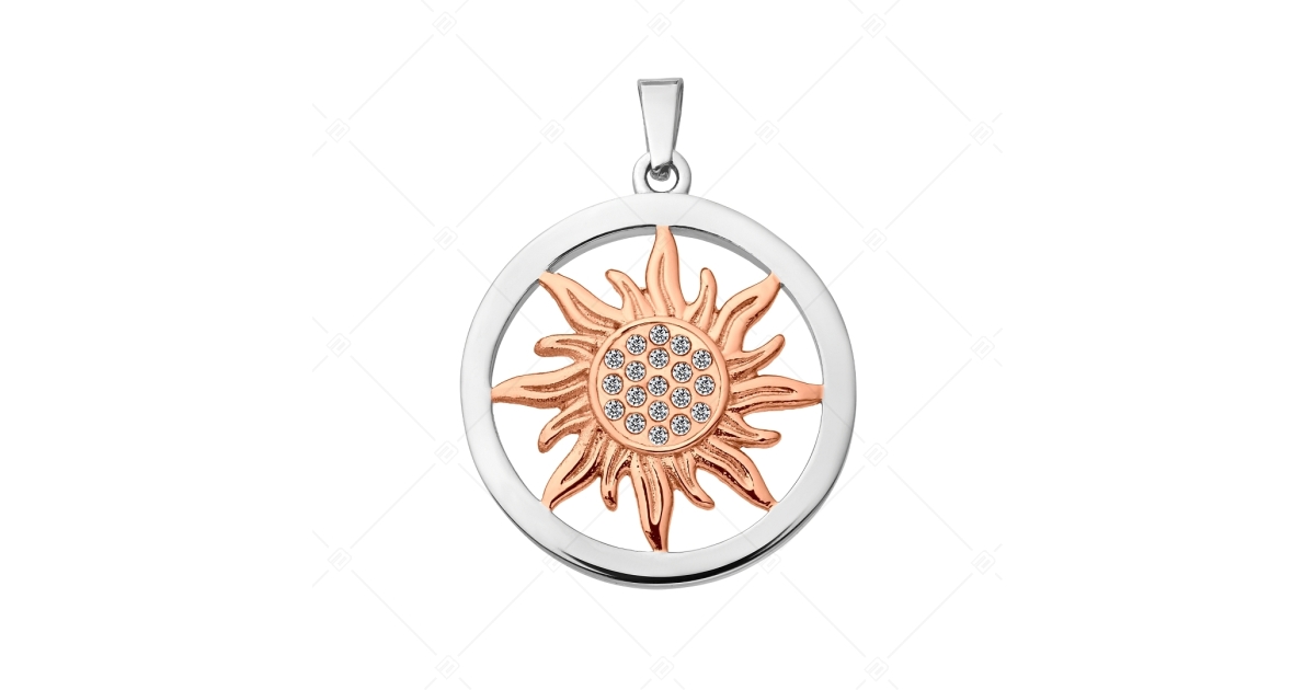 BALCANO - Sun / Pendentif soleil en acier inoxydable avec pierres précieuses de zircone, plaqué or rose 18K