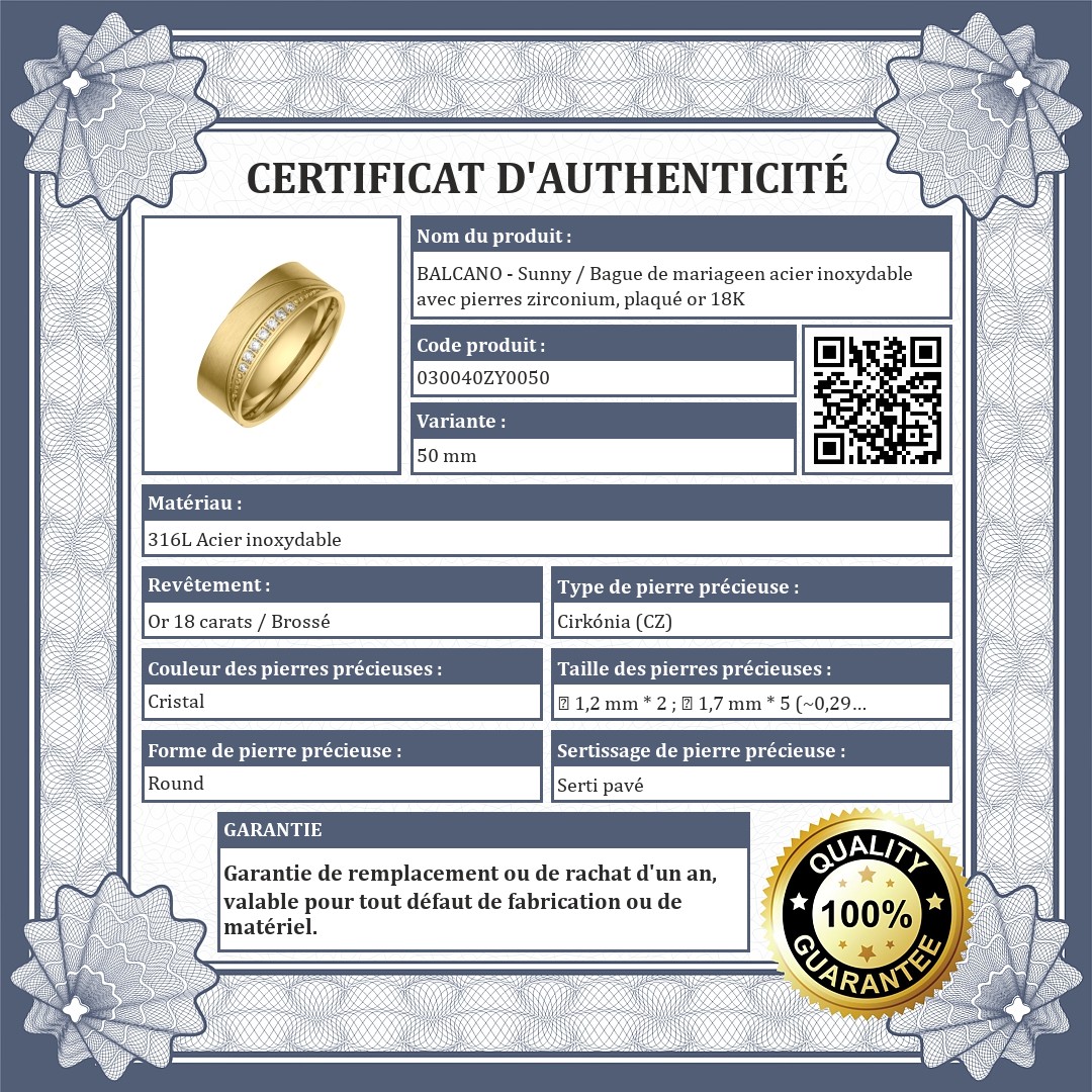 BALCANO - Sunny / Bague de mariageen acier inoxydable avec pierres zirconium, plaqué or 18K
