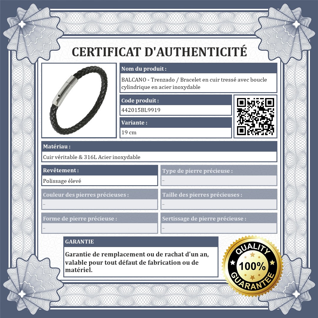 BALCANO - Trenzado / Bracelet en cuir tressé avec boucle cylindrique en acier inoxydable