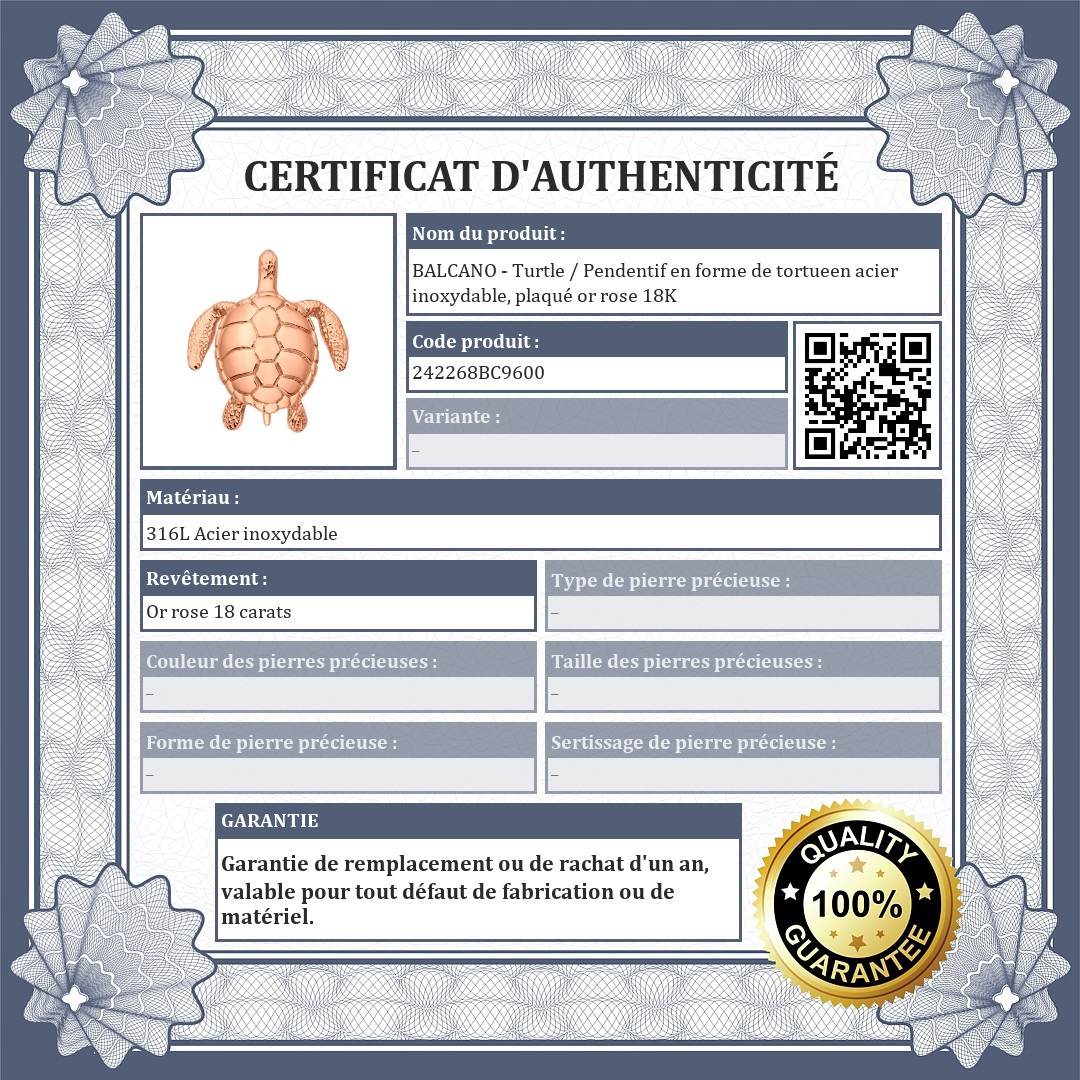 BALCANO - Turtle / Pendentif en forme de tortueen acier inoxydable, plaqué or rose 18K