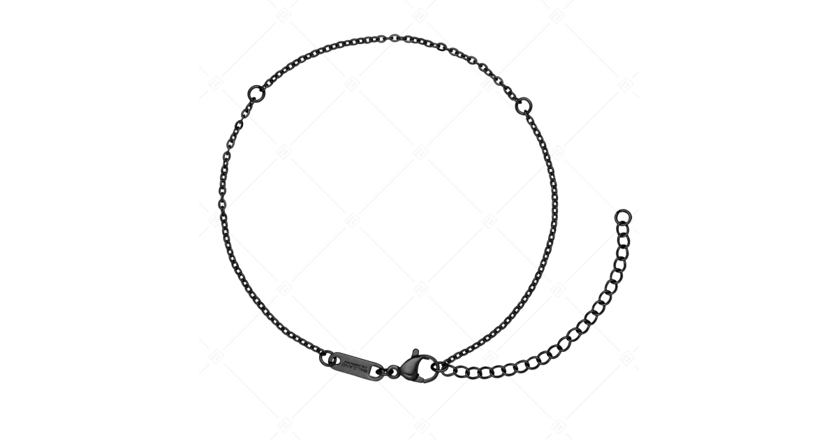 Bracelet de cheville type ancre aplatie pour différents charms. Bijoux en acier inoxydable de qualité médicale 316L, plaqué PVD noir. Un accessoire à la mode et élégant, qui, grâce à son matériau hypoallergénique, ne s'use pas et ne se ternit pas à l'usage.