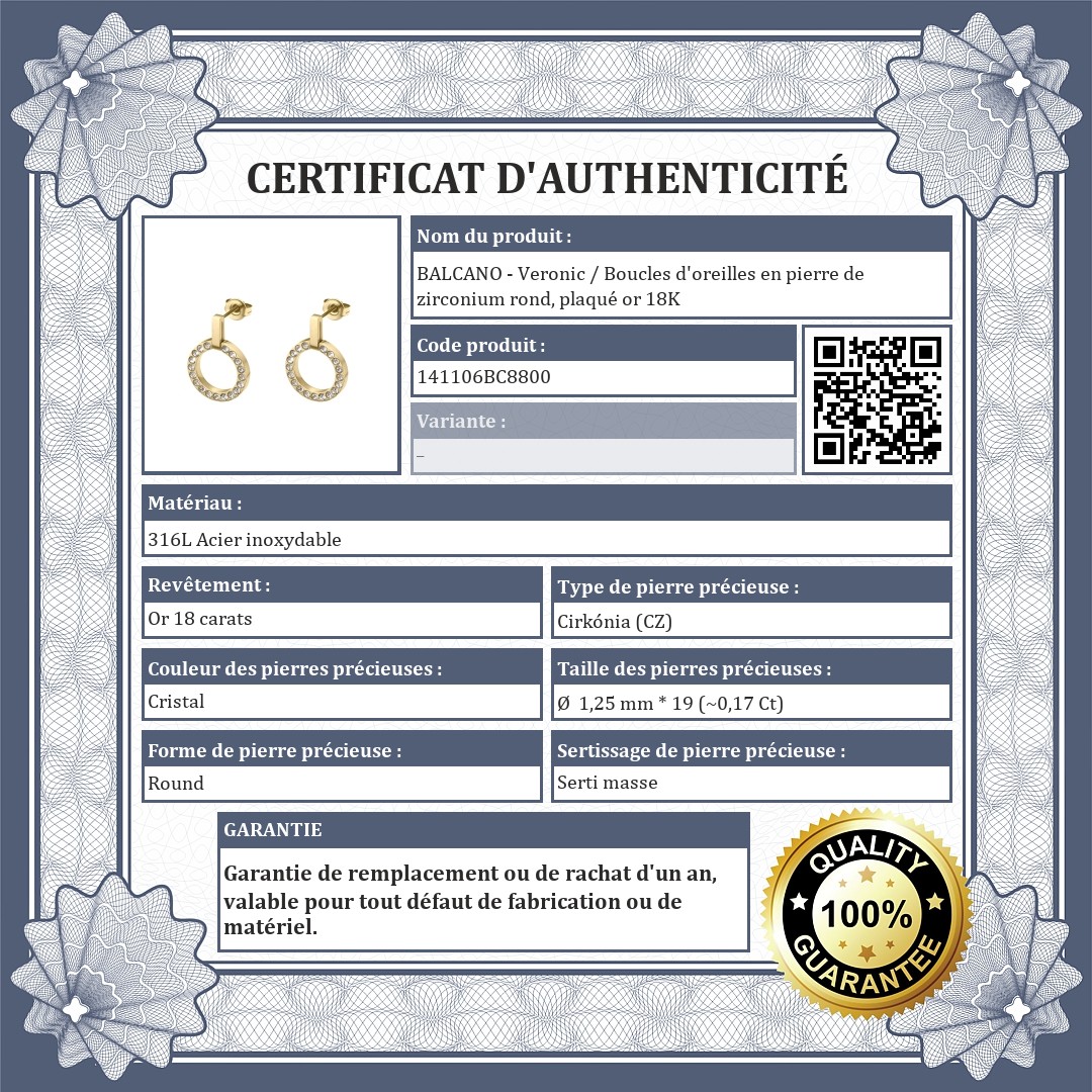BALCANO - Veronic / Boucles d'oreilles en pierre de zirconium rond, plaqué or 18K