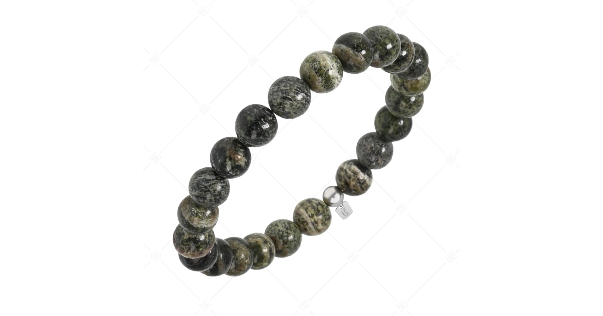 Bracelet original de perles minérales en pierre de dentelle verte (serpentine).