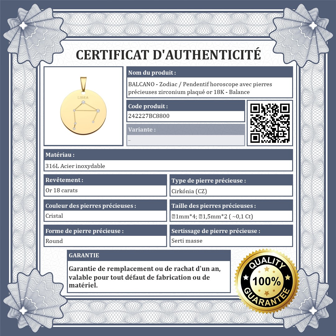 BALCANO - Zodiac / Pendentif horoscope avec pierres précieuses zirconium plaqué or 18K - Balance