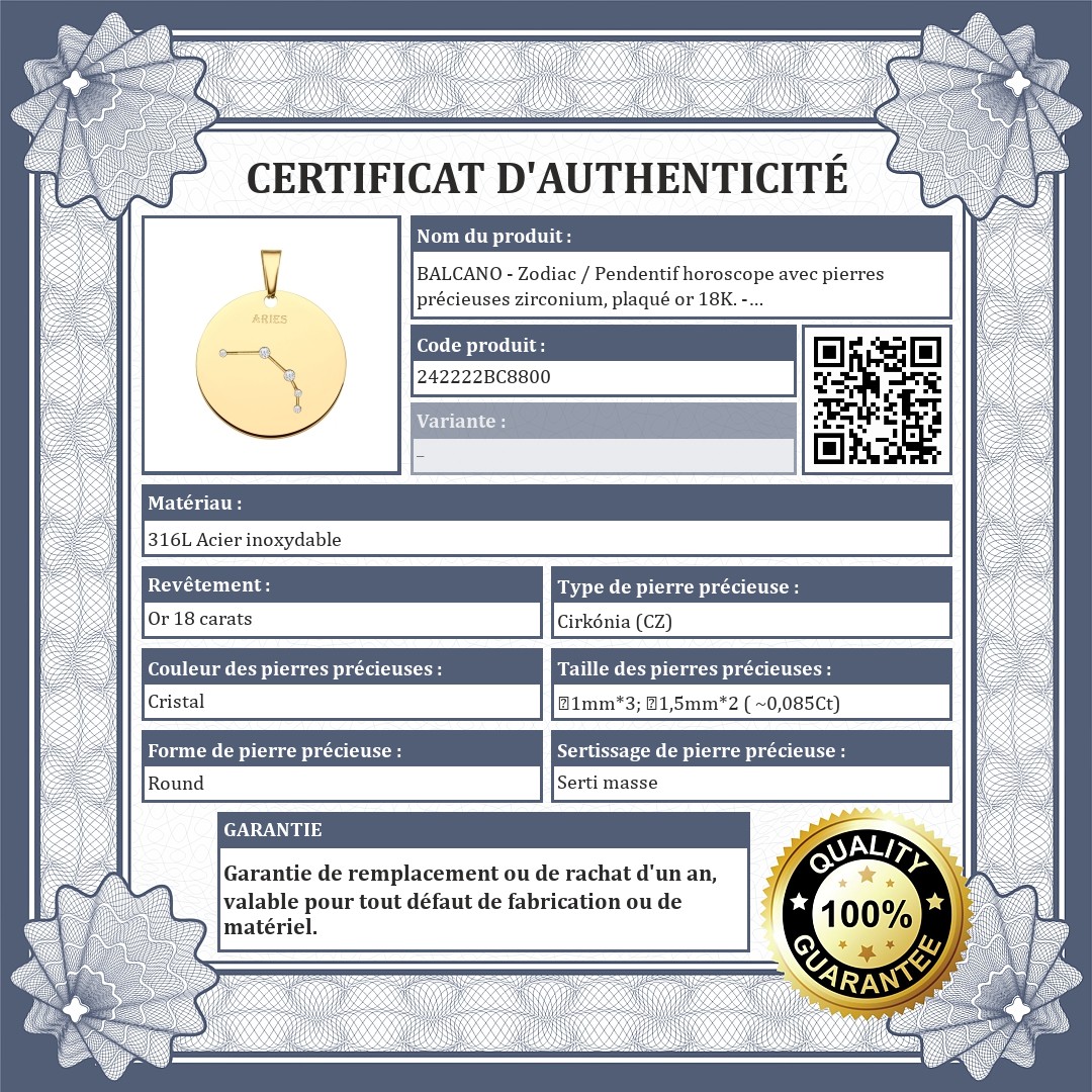 BALCANO - Zodiac / Pendentif horoscope avec pierres précieuses zirconium, plaqué or 18K. - Bélier