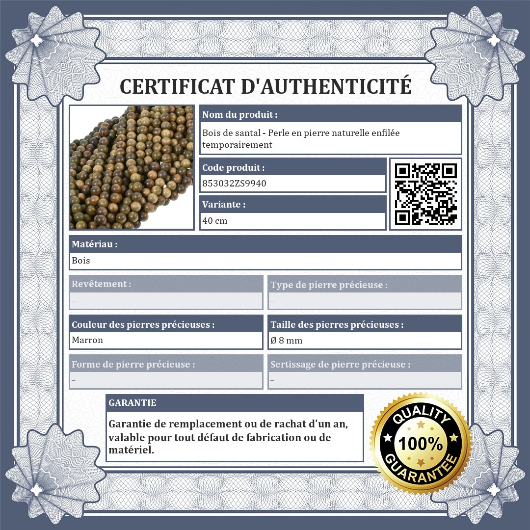 Bois de santal - Perle en pierre naturelle enfilée temporairement