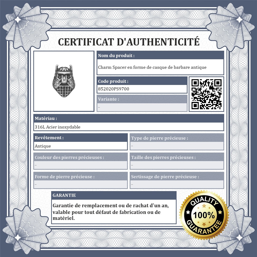 Charm spacer en forme de casque de barbare antique. Fabriqué en acier inoxydable de qualité médicale 316L avec une finition spéciale antiquaire. De haute qualité, il ne s'usera pas et ne ternira pas à l'usage. Les spacers permettent d'éviter que les charms et les perles ne glissent de votre bracelet.
