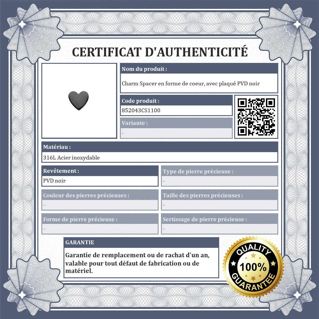 Charm Spacer en forme de coeur, avec plaqué PVD noir