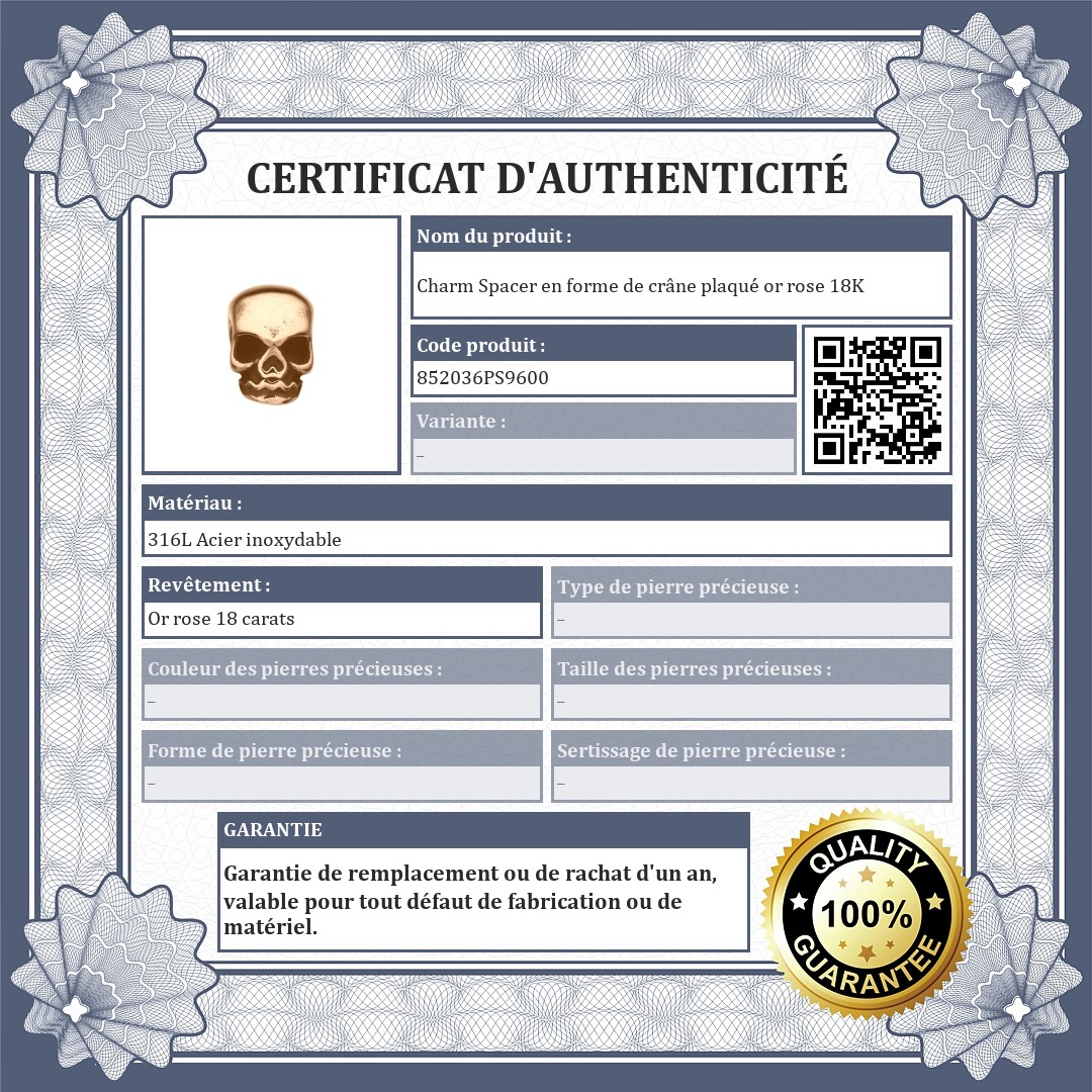 Charm Spacer en forme de crâne. Accessoire en acier inoxydable de qualité médicale 316L, plaqué or rose 18K. Les spacers permettent d'éviter que les charms et les perles ne glissent de votre bracelet.