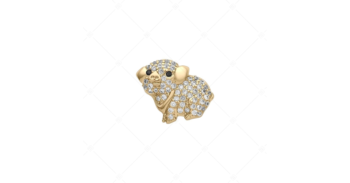 Charm spacer en forme de porcin. Fabriqué en cuivre, plaqué or 18K. Les pierres précieuses étincelantes en zirconium cubique le rendent encore plus excitant. Les spacers permettent d'éviter que les charms et les perles ne glissent de votre bracelet.