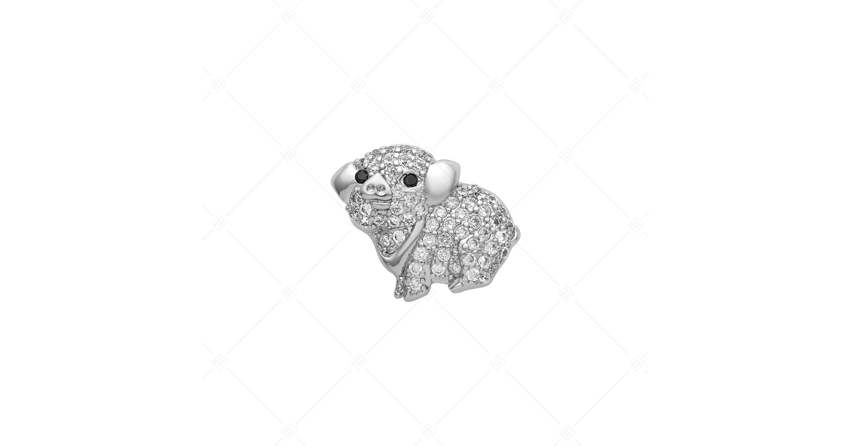 Charm spacer en forme de porcin. Fabriqué en cuivre, plaqué argent 925 Sterling. Les pierres précieuses étincelantes en zirconium cubique le rendent encore plus excitant. Les spacers permettent d'éviter que les charms et les perles ne glissent de votre bracelet.