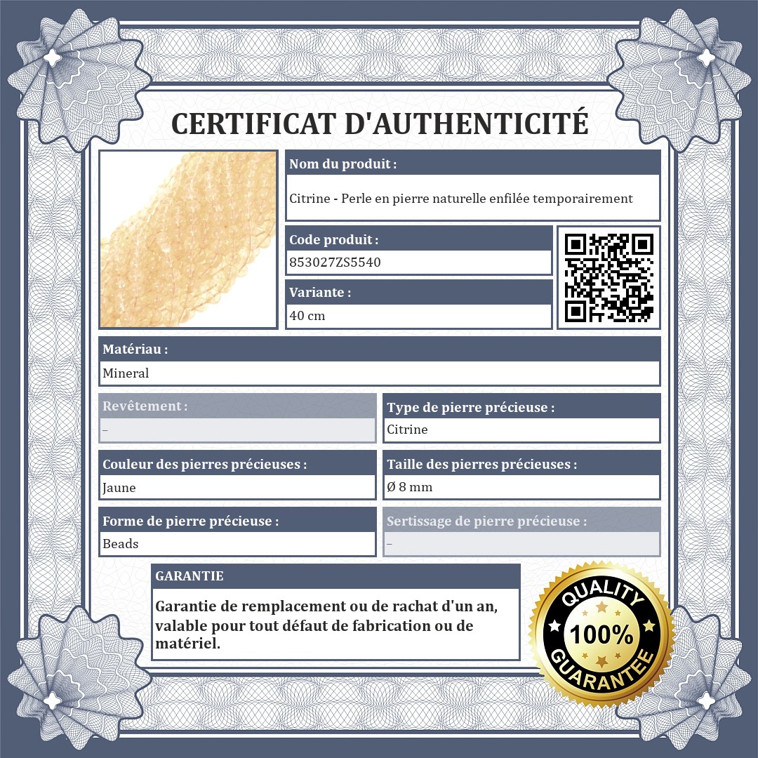 Original de perles minérales en citrine.