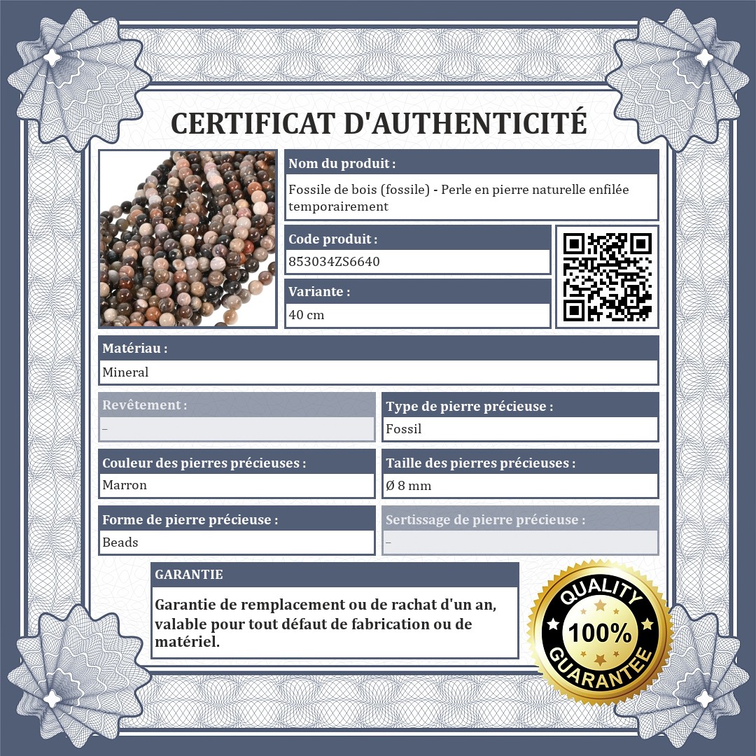 Fossile de bois (fossile) - Perle en pierre naturelle enfilée temporairement