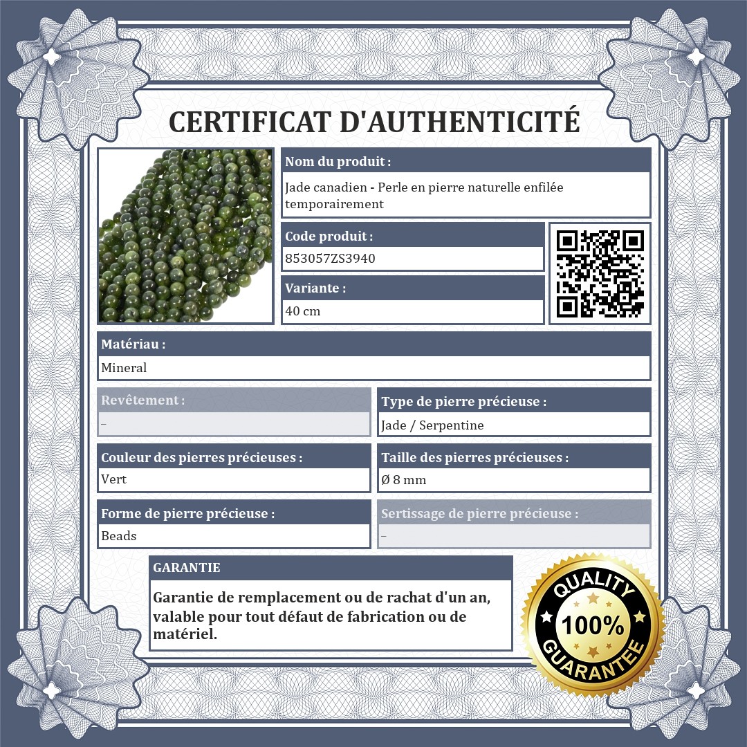Jade canadien - Perle en pierre naturelle enfilée temporairement