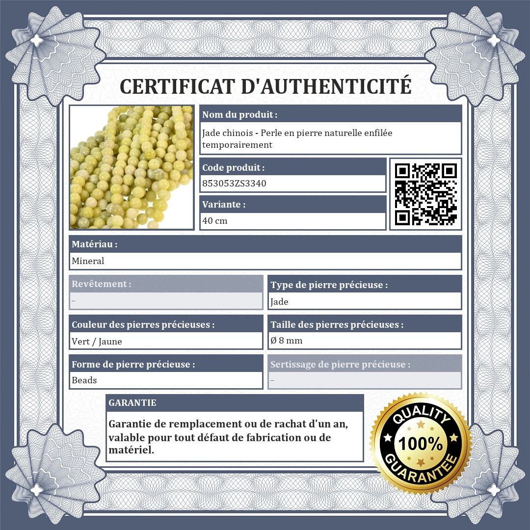 Jade chinois - Perle en pierre naturelle enfilée temporairement