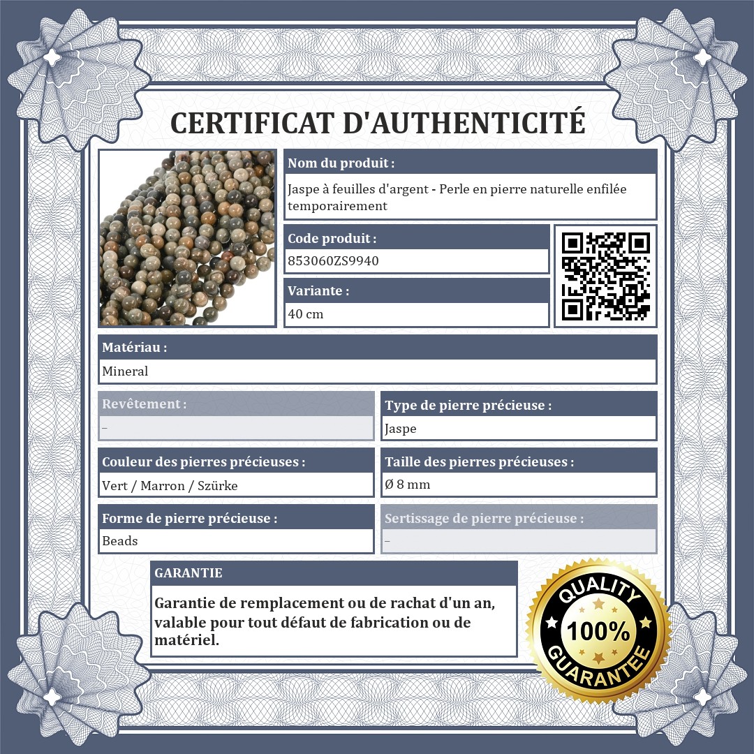 Jaspe à feuilles d'argent - Perle en pierre naturelle enfilée temporairement