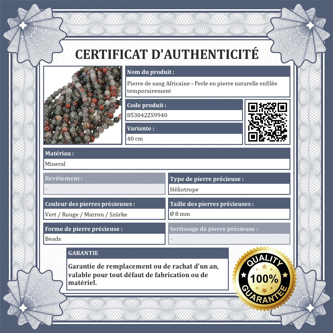 Pierre de sang Africaine - Perle en pierre naturelle enfilée temporairement