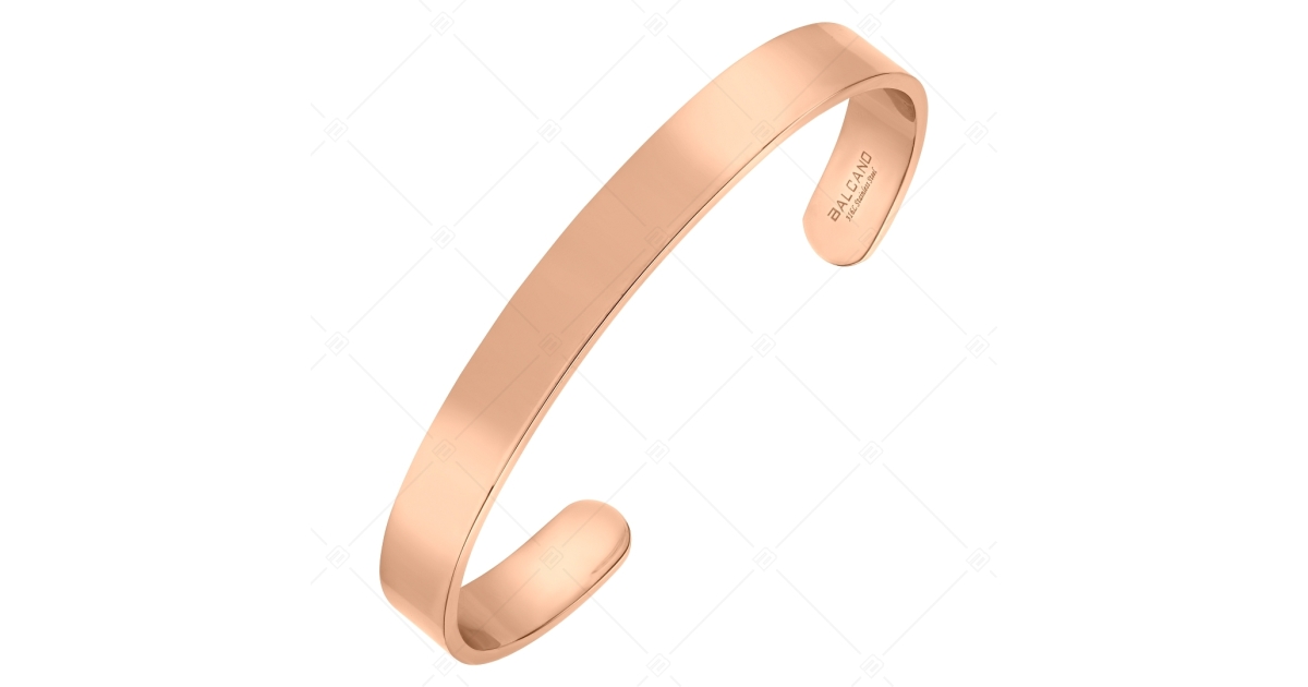 Classic bangle bracelet in 316L medical stainless steel with 18K rose gold plated. Open at the back for easy removal and pick-up. Made of high quality material. The surface is also suitable for engraving.