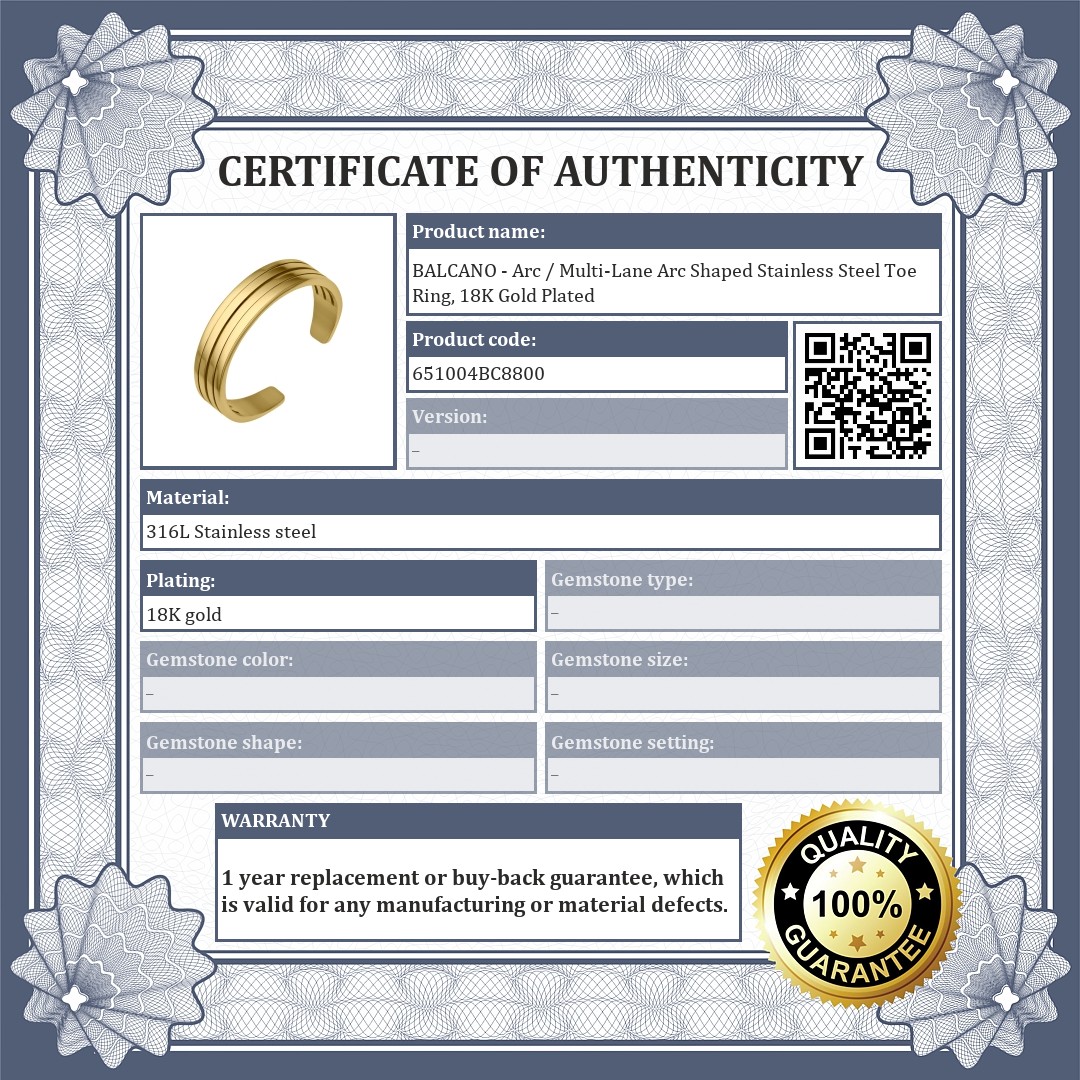 Antyallergenic 316L medical stainless steel jewelry, 18K gold plated. The toe ring represents a multi-lane arc.