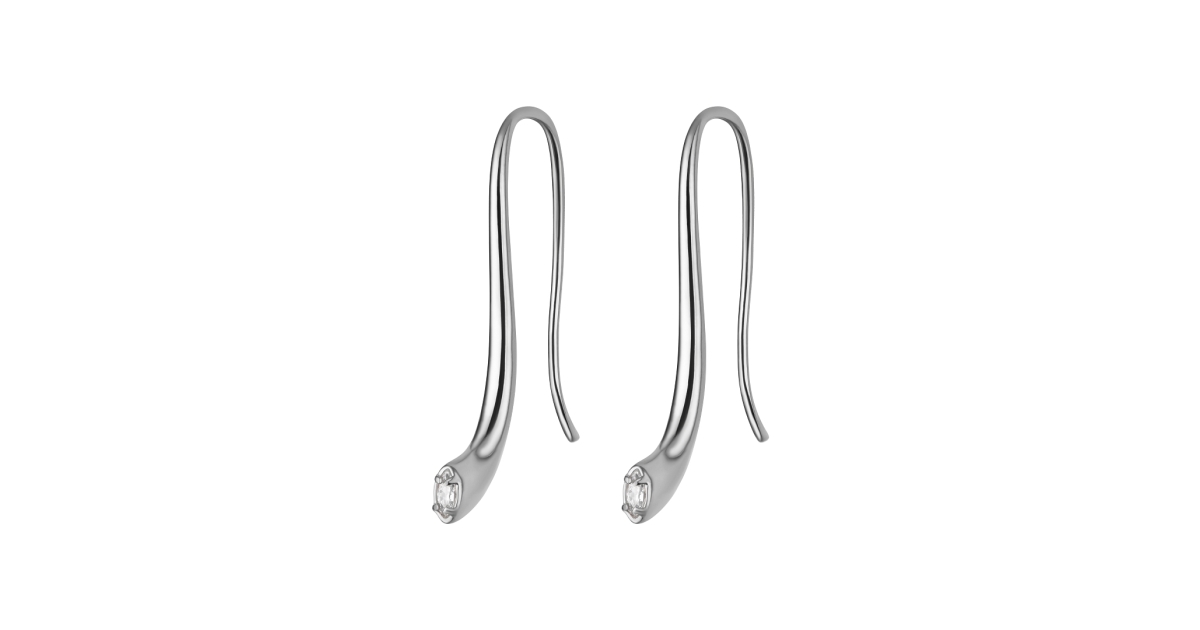 Unique, curved shaped drop earrings with high-gloss polishing and a sparkling cubic zirconia gemstone in a claw setting at the end. 316L medical grade stainless steel jewelry, which is extremely durable and will not wear or discolour.