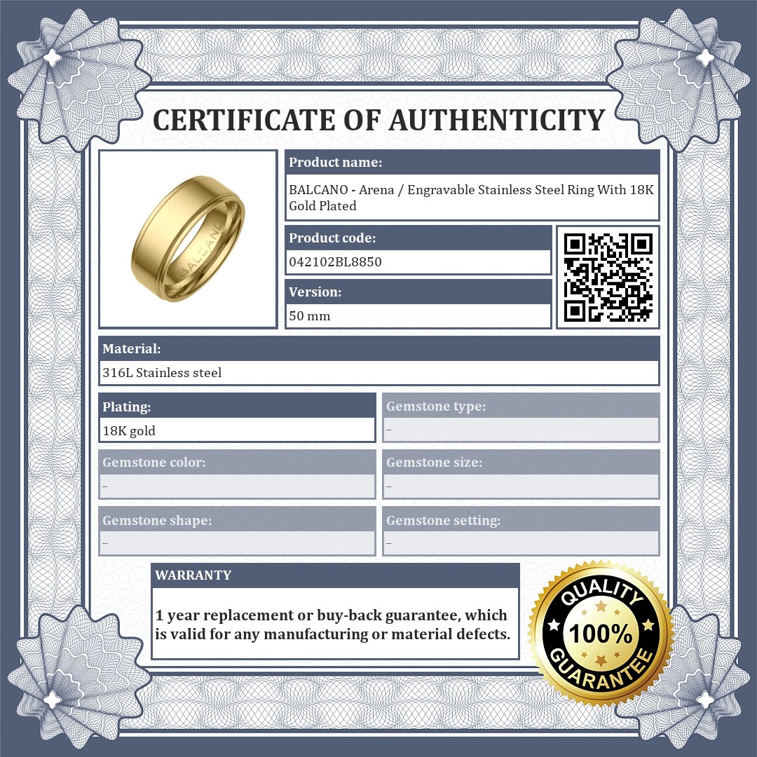 BALCANO - Arena / Engravable Stainless Steel Ring With 18K Gold Plated
