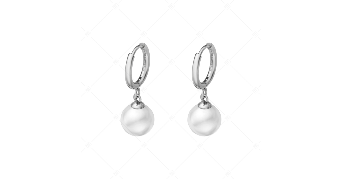 Elegant, round earrings adorned with a silky pearl. Anti-allergy medical 316L stainless steel jewelry, with high polish.