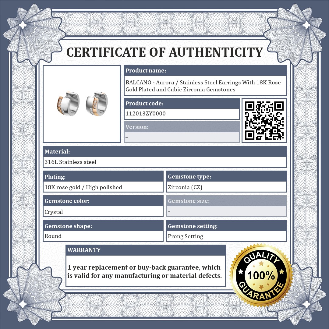 BALCANO - Aurora / Stainless Steel Earrings With 18K Rose Gold Plated and Cubic Zirconia Gemstones