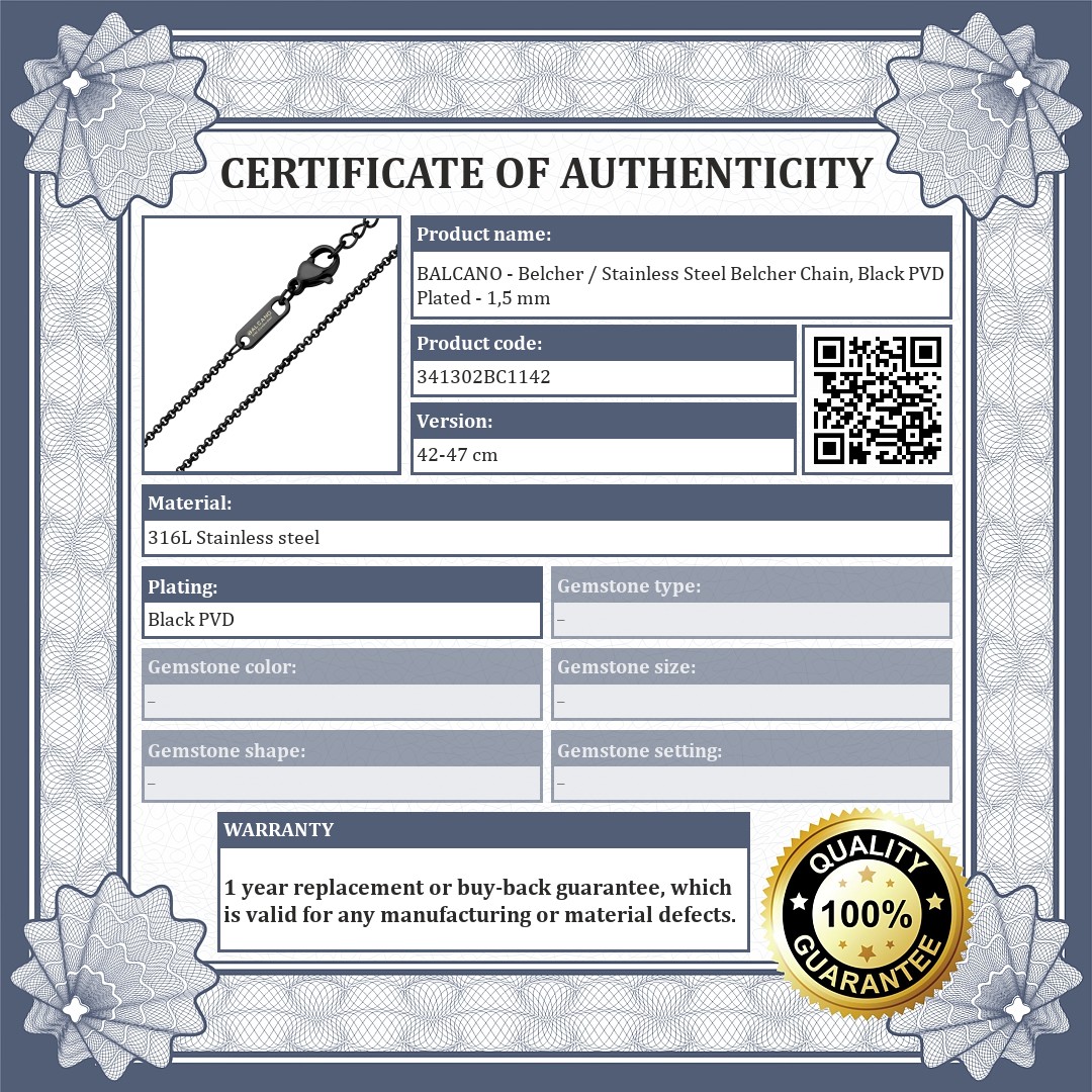 BALCANO - Belcher / Stainless Steel Belcher Chain, Black PVD Plated - 1,5 mm