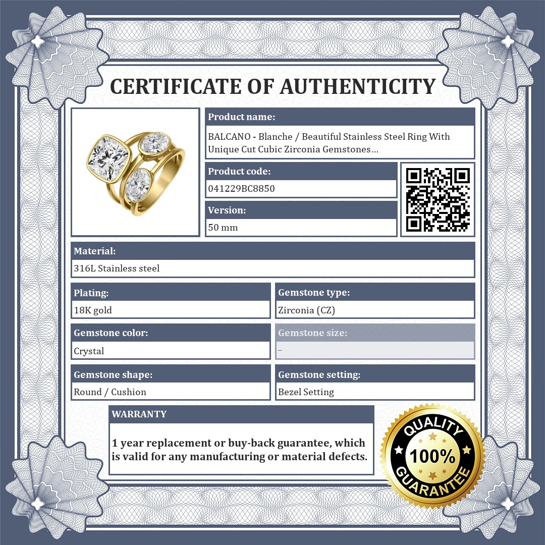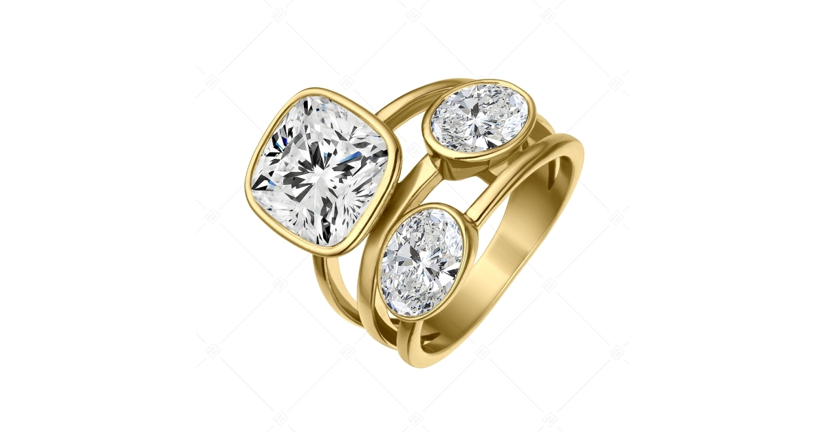 BALCANO - Blanche / Beautiful Stainless Steel Ring With Unique Cut Cubic Zirconia Gemstones And 18K Gold Plated