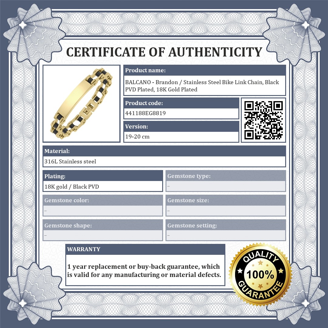 BALCANO - Brandon / Stainless Steel Bike Link Chain, Black PVD Plated, 18K Gold Plated