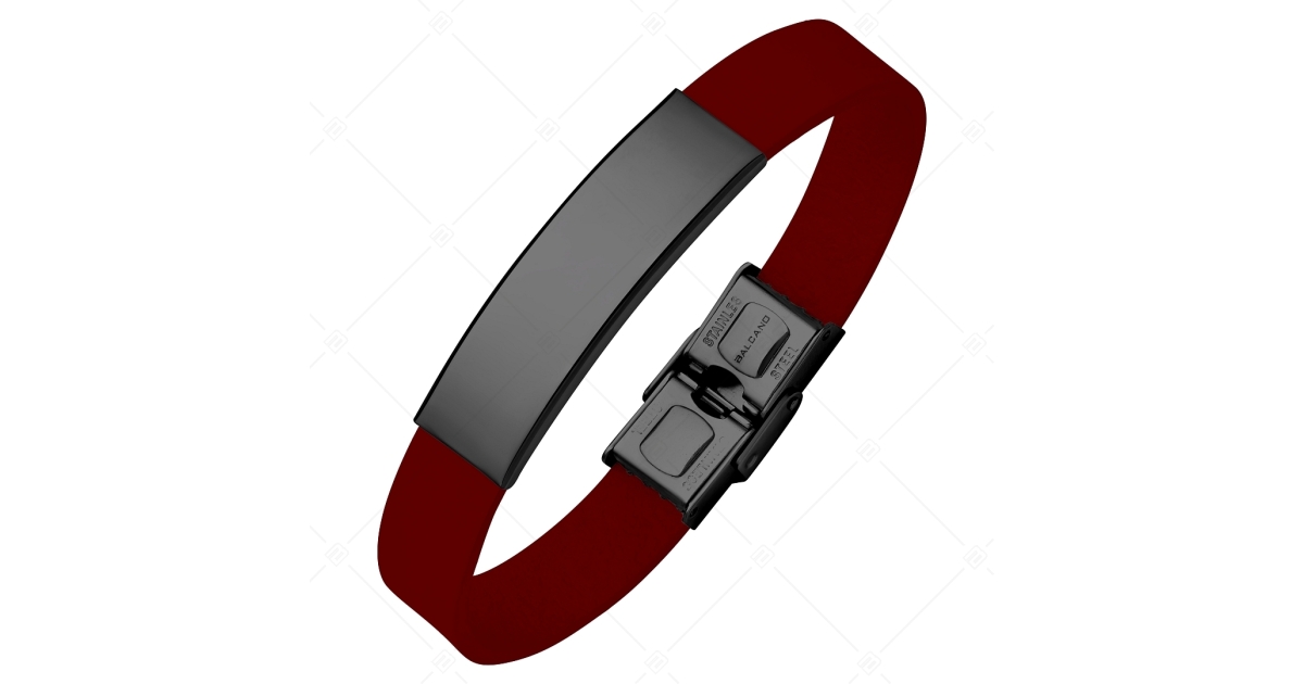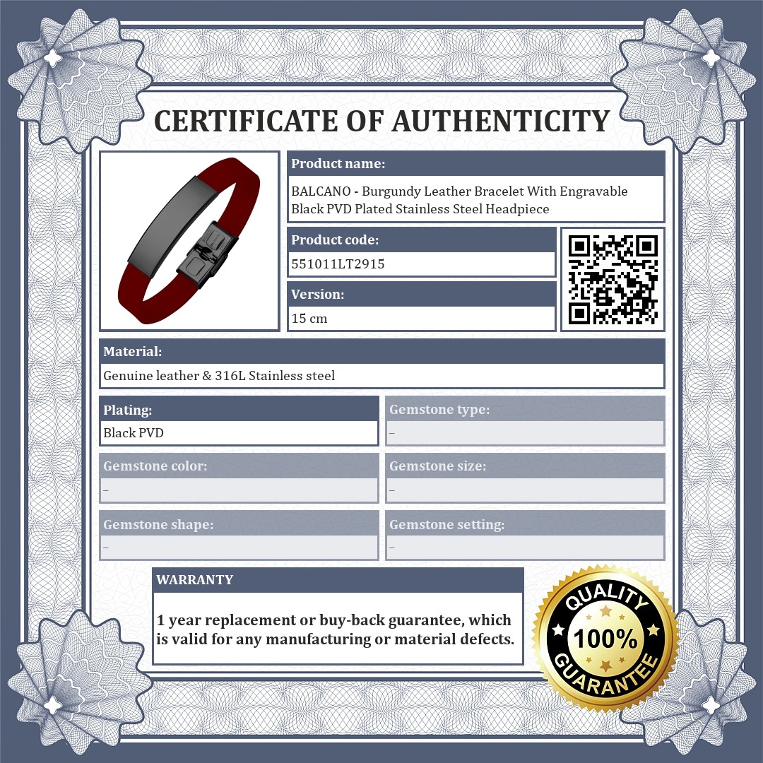 BALCANO - Burgundy Leather Bracelet With Engravable Black PVD Plated Stainless Steel Headpiece
