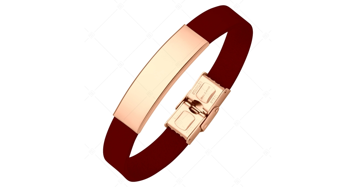 BALCANO - Burgundy Leather Bracelet With Engravable Rectangular 18K Rose Gold Plated Stainless Steel Headpiece