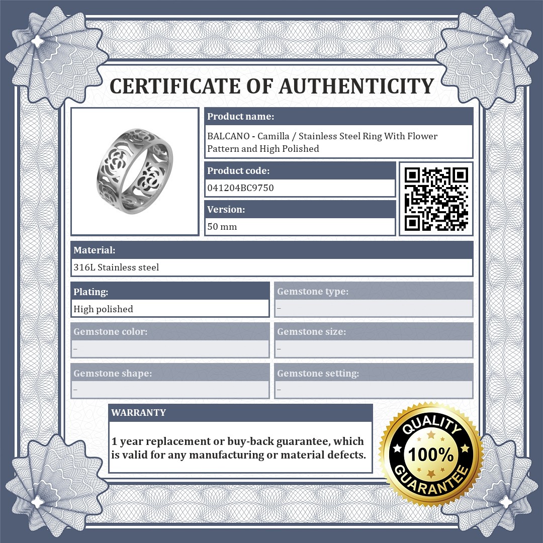 BALCANO - Camilla / Stainless Steel Ring With Flower Pattern and High Polished