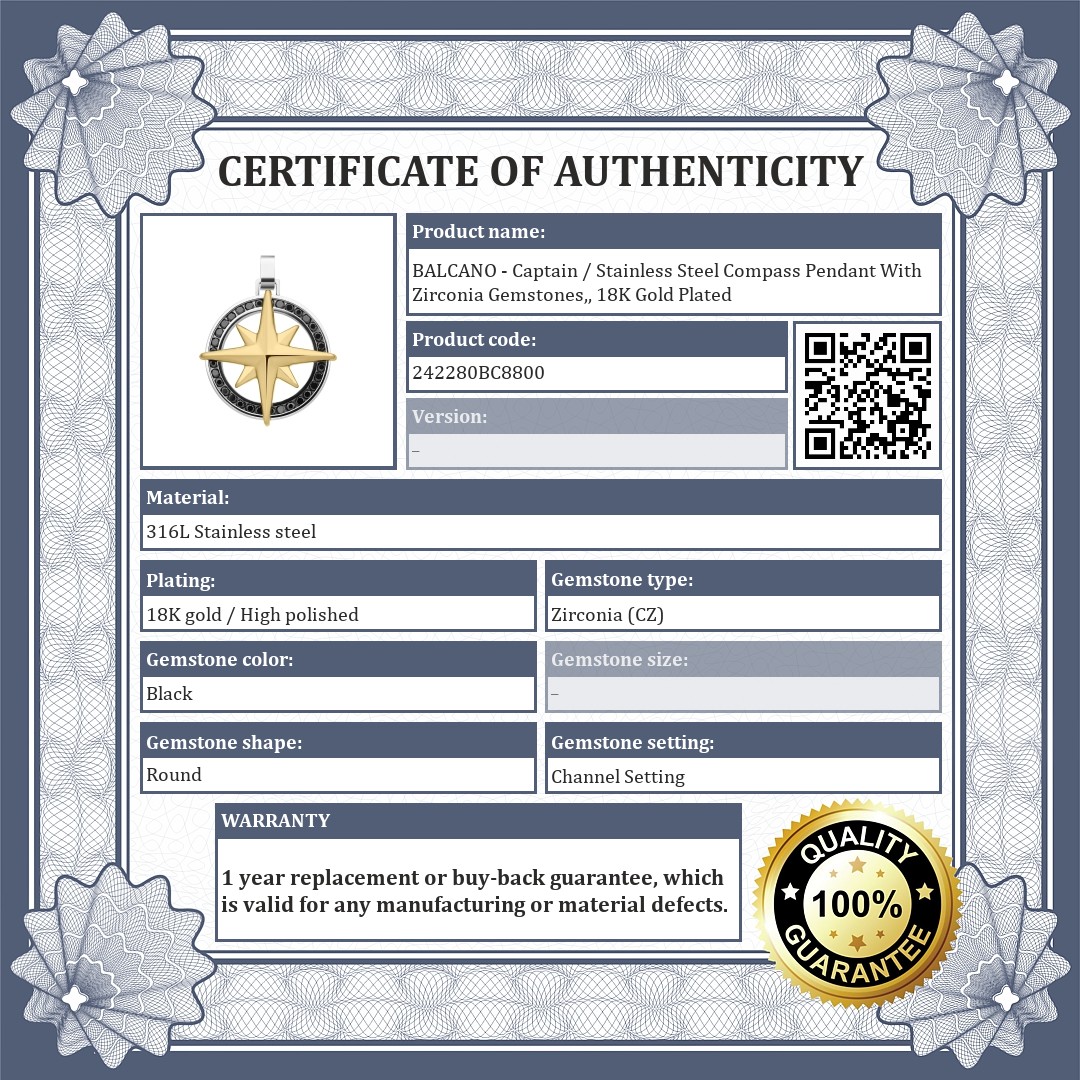 BALCANO - Captain / Stainless Steel Compass Pendant With Zirconia Gemstones,, 18K Gold Plated