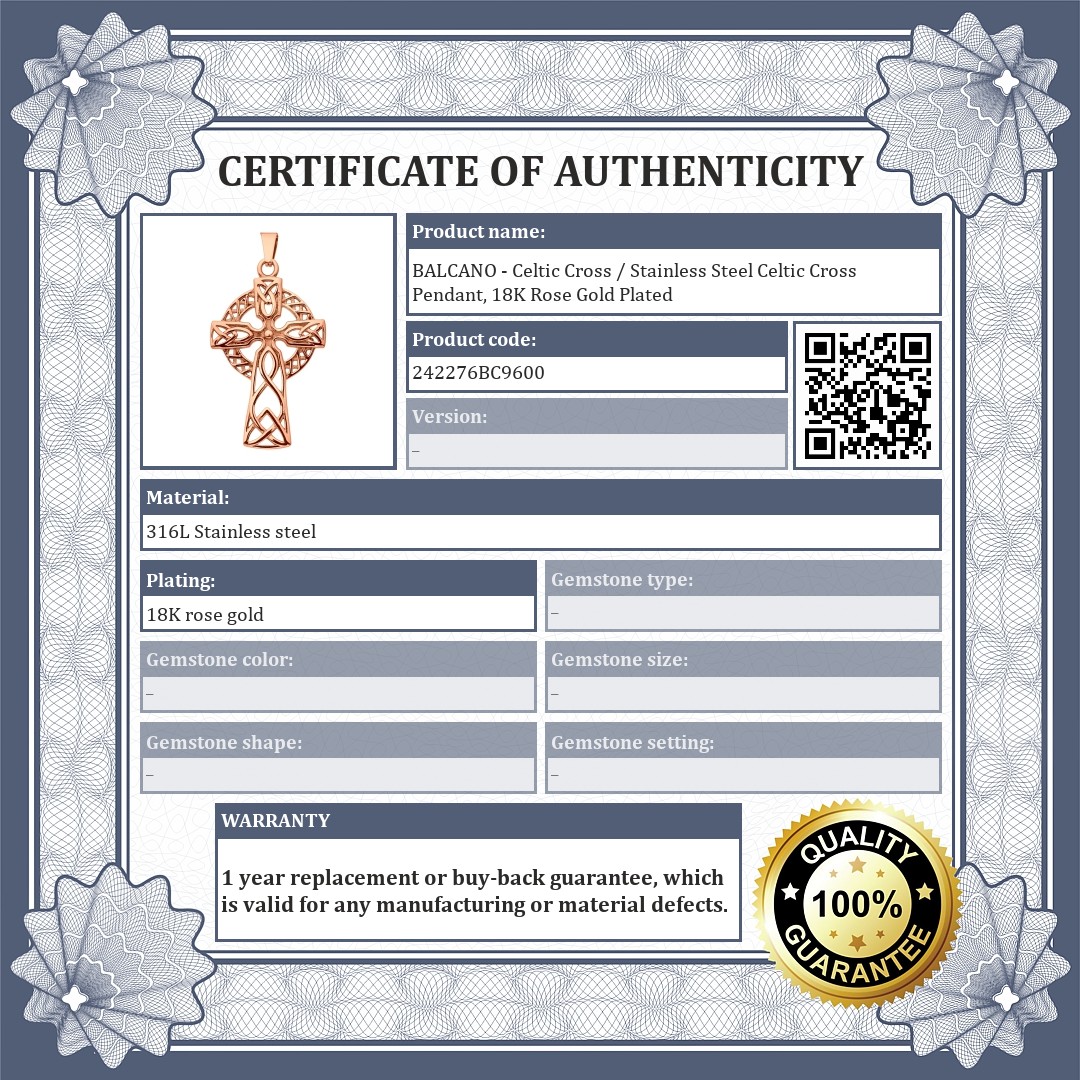 BALCANO - Celtic Cross / Stainless Steel Celtic Cross Pendant, 18K Rose Gold Plated
