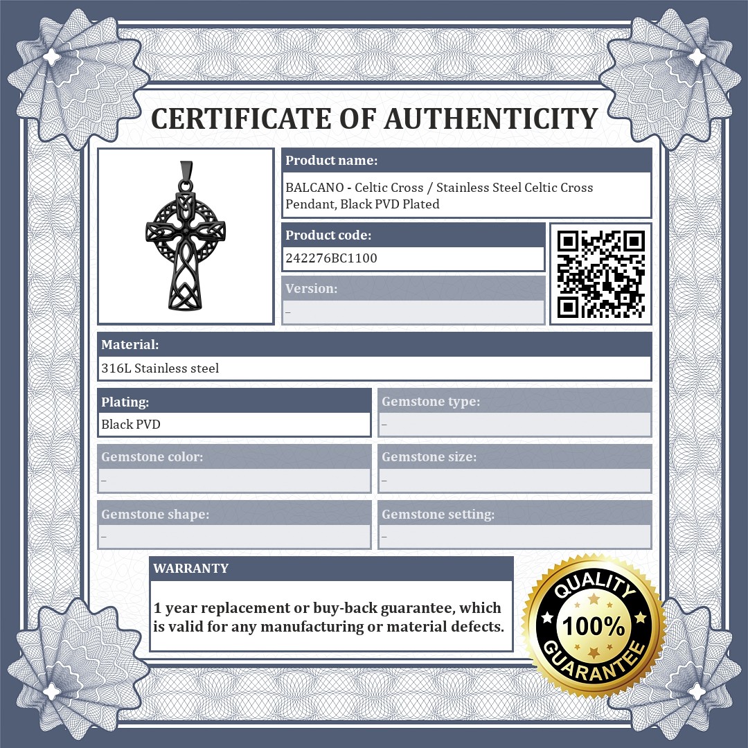 BALCANO - Celtic Cross / Stainless Steel Celtic Cross Pendant, Black PVD Plated