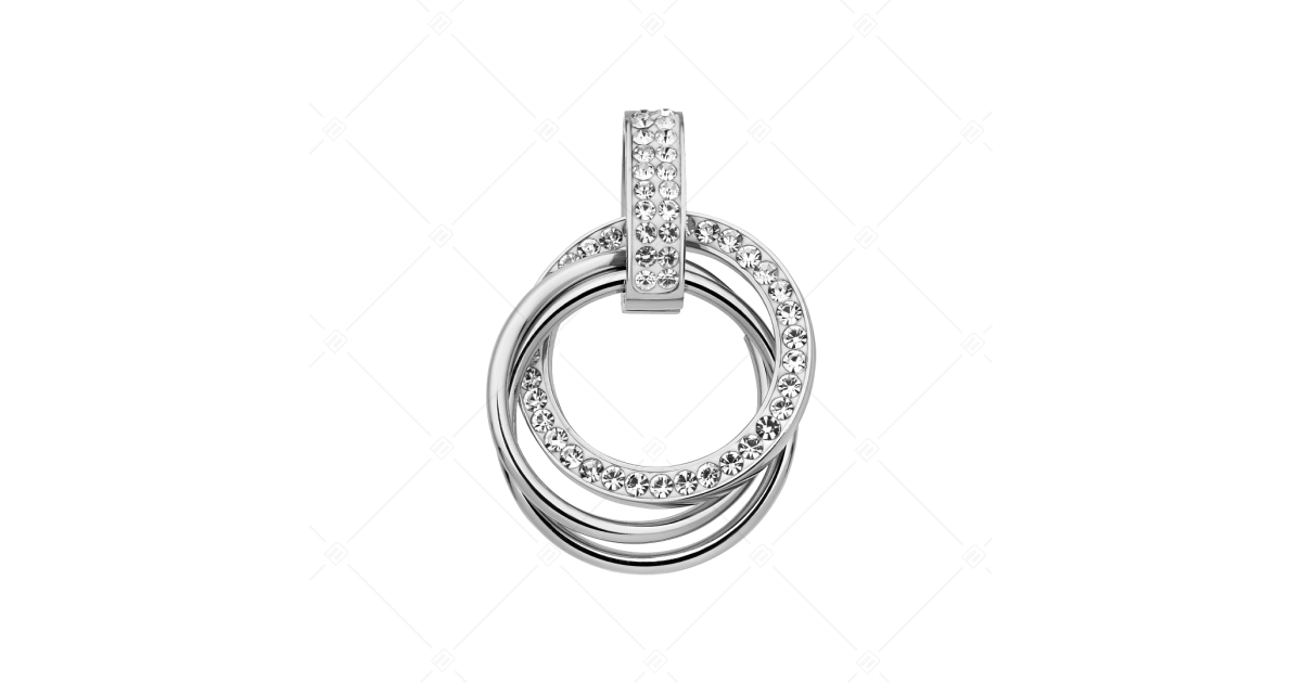 Beautiful pendant with Czech crystals in several rings. Made of 316L medical stainless steel with high polish. Set with cubic zirconia gemstones. The material is anti-allergy, non-abrasive and non-fraying.