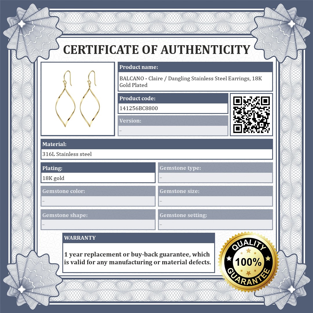 BALCANO - Claire / Dangling Stainless Steel Earrings, 18K Gold Plated