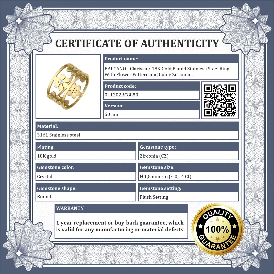 BALCANO - Clarissa / 18K Gold Plated Stainless Steel Ring With Flower Pattern and Cubic Zirconia Gemstones