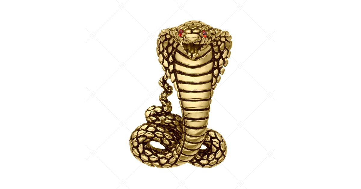 The material is allergy-free, non-abrasive and non-abrasive. The eyes of the cobra are made of red zirconia gemstones.