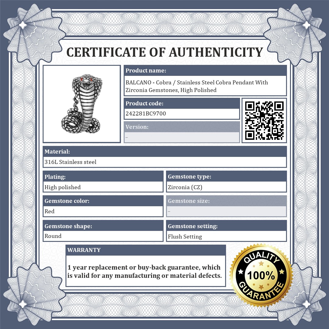 BALCANO - Cobra / Stainless Steel Cobra Pendant With Zirconia Gemstones, High Polished