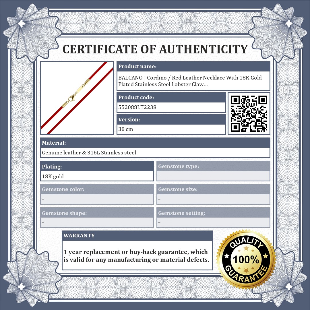 BALCANO - Cordino / Red Leather Necklace With 18K Gold Plated Stainless Steel Lobster Claw Clasp - 2 mm
