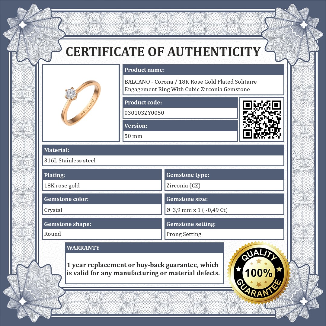 BALCANO - Corona / 18K Rose Gold Plated Solitaire Engagement Ring With Cubic Zirconia Gemstone