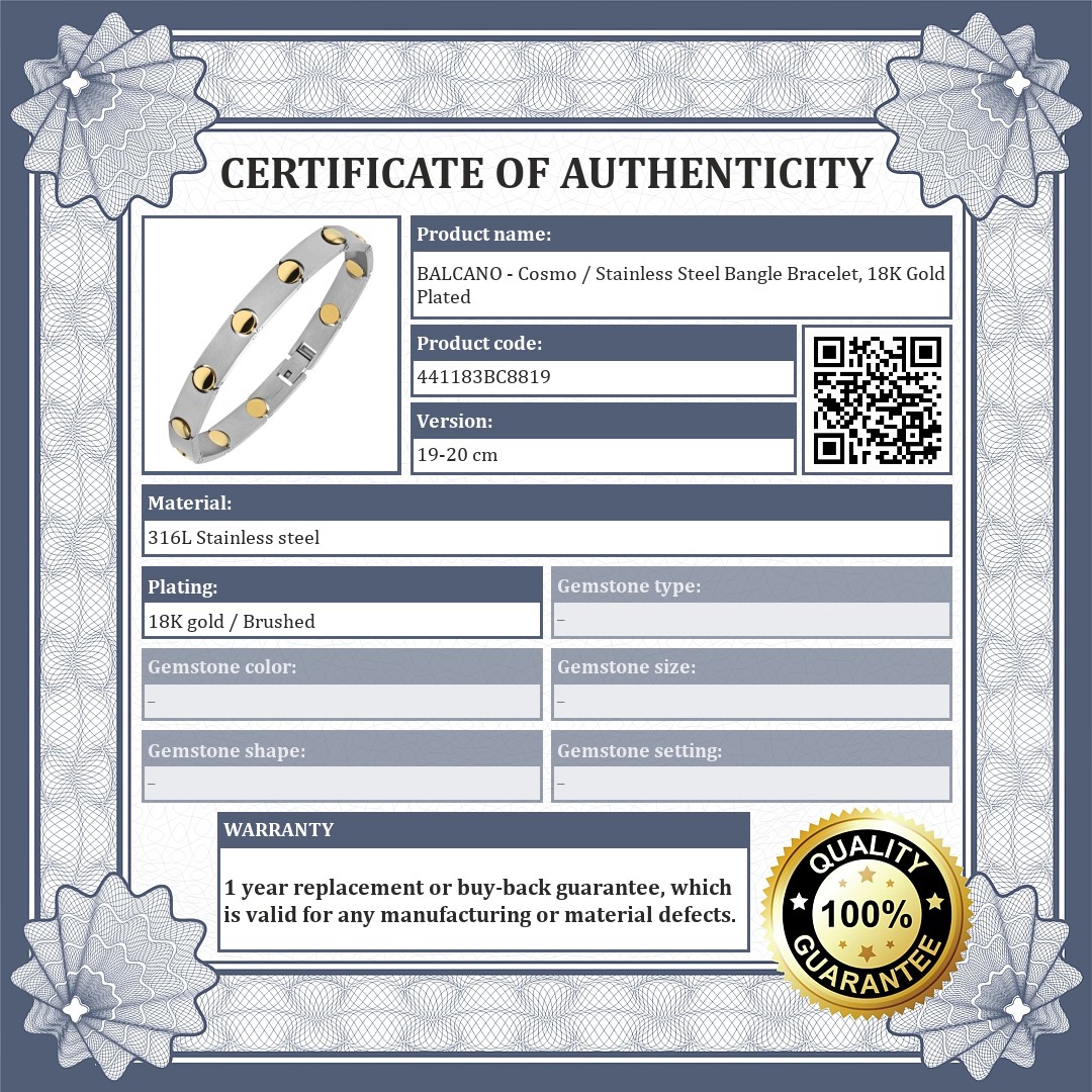 BALCANO - Cosmo / Stainless Steel Bangle Bracelet, 18K Gold Plated
