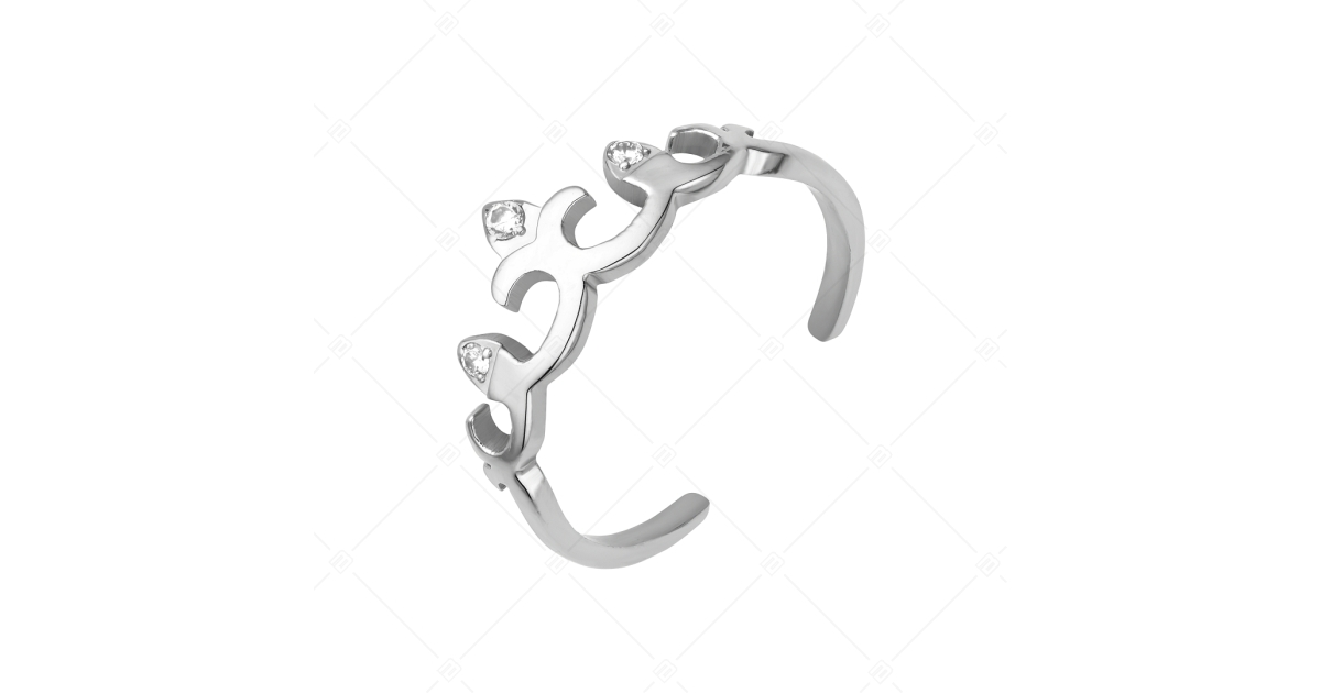 BALCANO - Crown / Crown Shaped Stainless Steel Toe Ring With Zinconia Gemstones, High Polished
