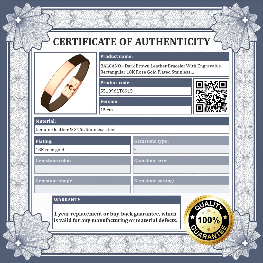 BALCANO - Dark Brown Leather Bracelet With Engravable Rectangular 18K Rose Gold Plated Stainless Steel Headpiece