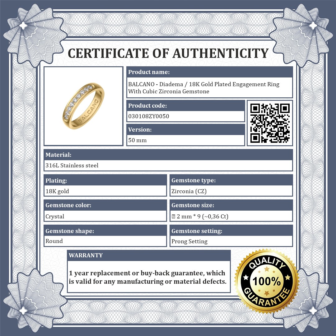 BALCANO - Diadema / 18K Gold Plated Engagement Ring With Cubic Zirconia Gemstone